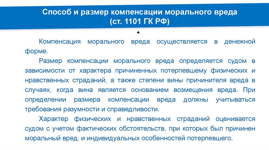 РЕМОНТ Способ и размер компенсации морального вреда(ст. 1101 ГК РФ)