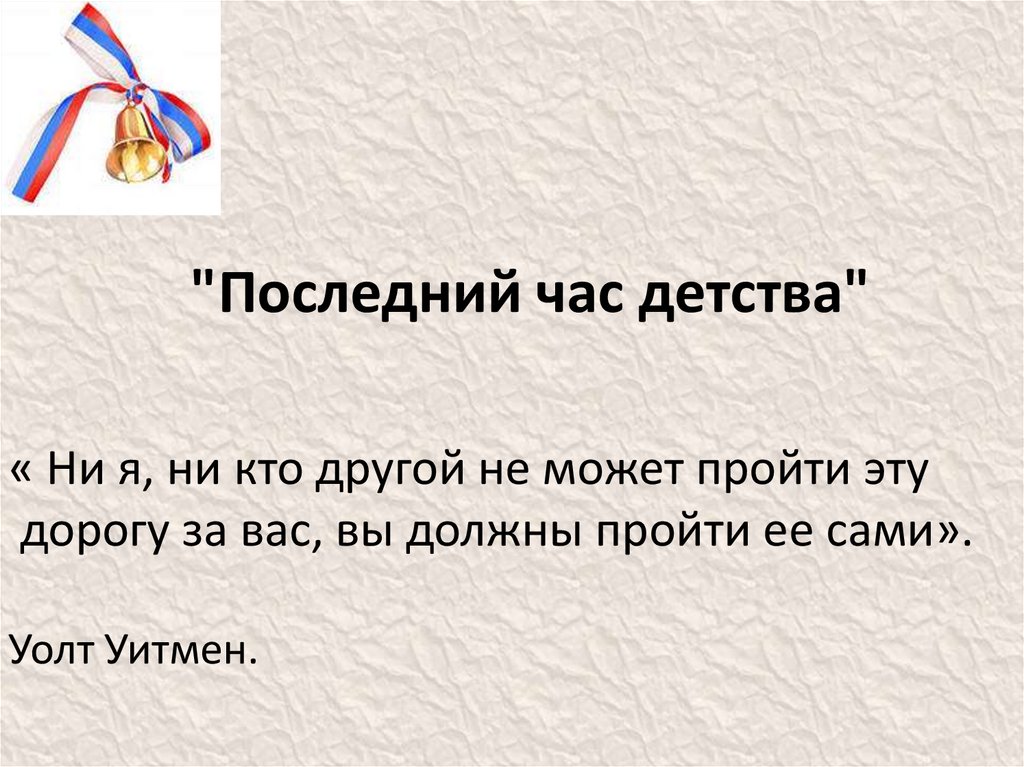 "Последний час детства"« Ни я, ни кто другой не может пройти эту