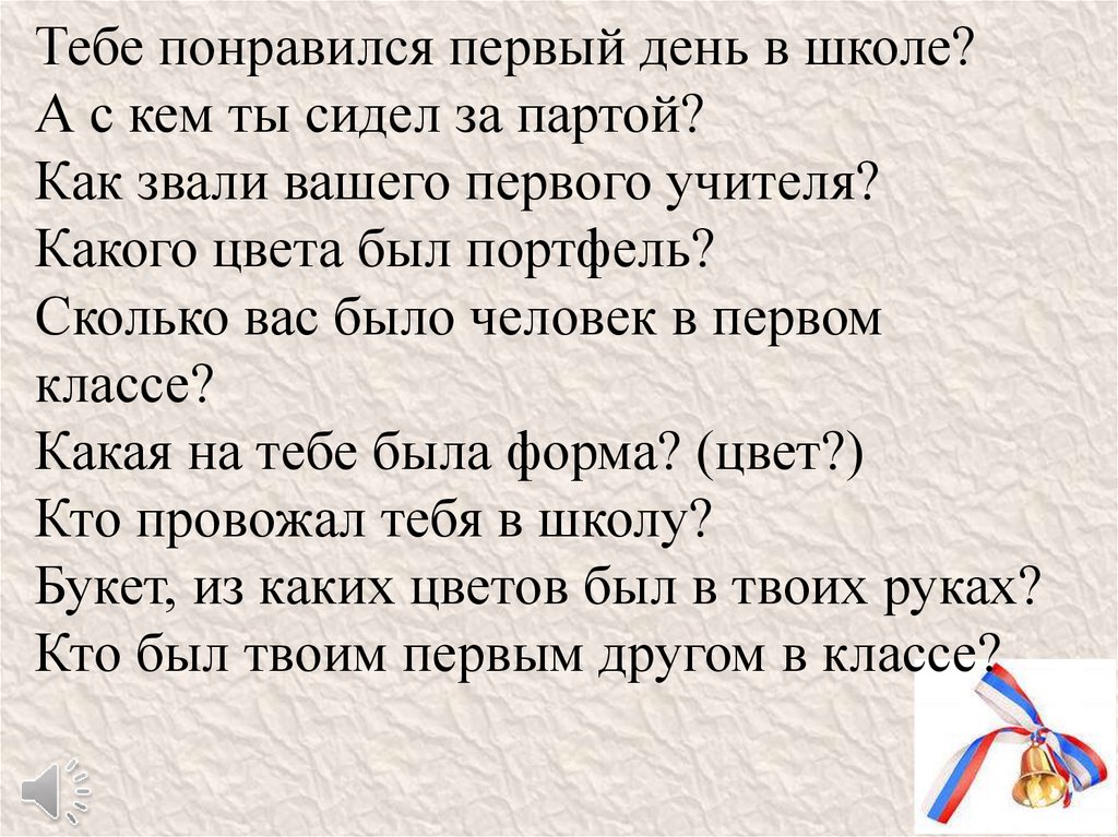 Тебе понравился первый день в школе?А с кем ты сидел за партой?