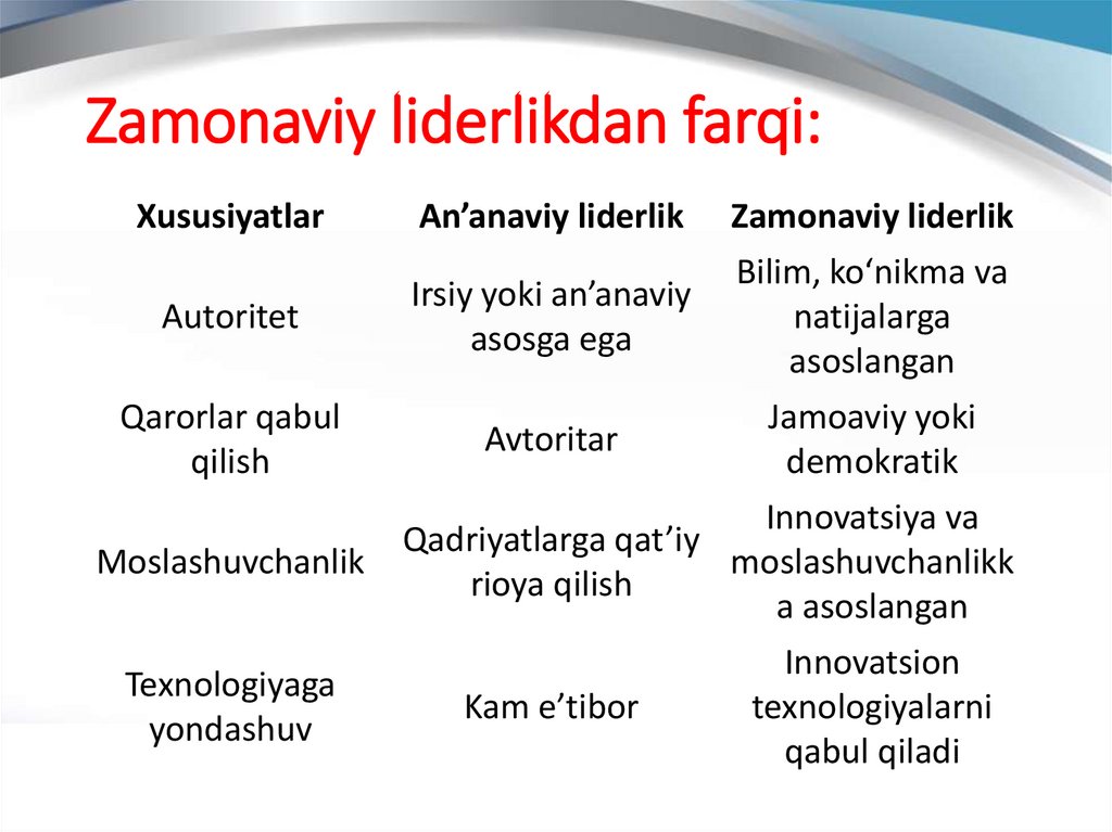 mavjud vaziyatga ijobiy ta’sir ko‘rsatishga intiladi.