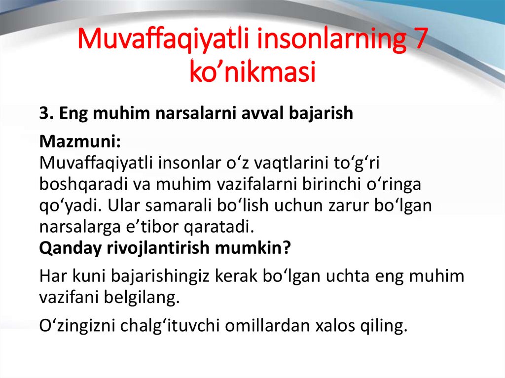 3. Eng muhim narsalarni avval bajarishMazmuni: