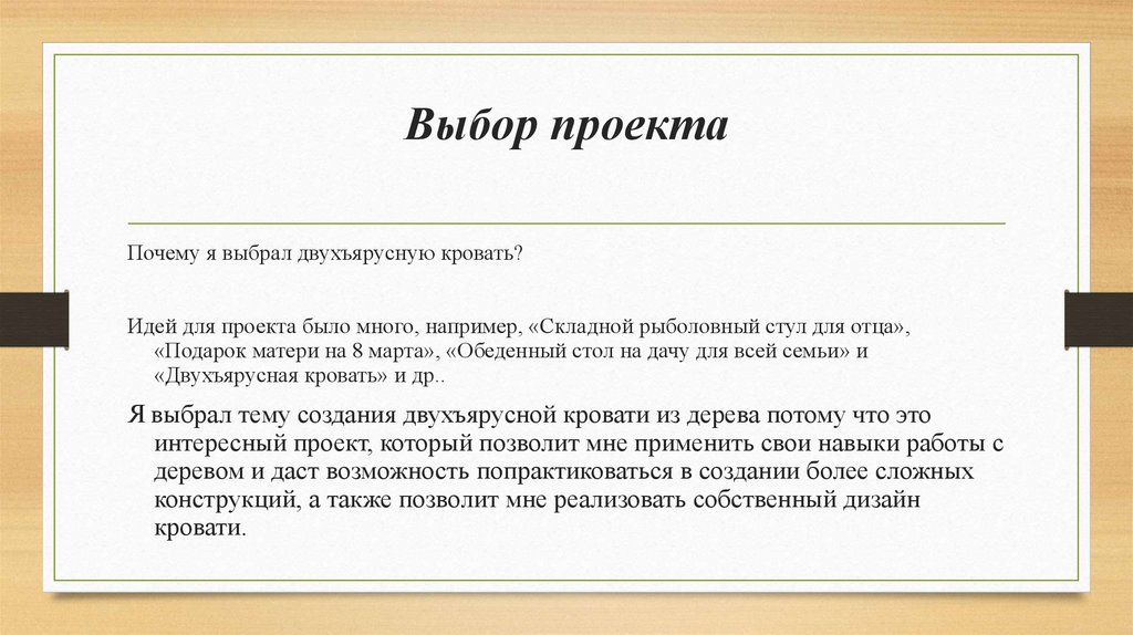 Я выбрал тему создания двухъярусной кровати из дерева потому что это
