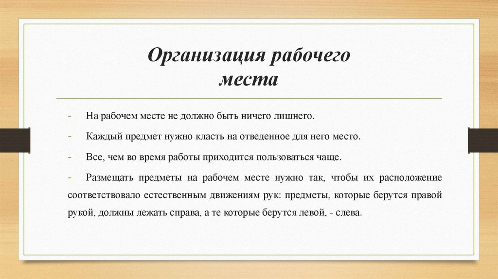 Размещать предметы на рабочем месте нужно так, чтобы их расположение