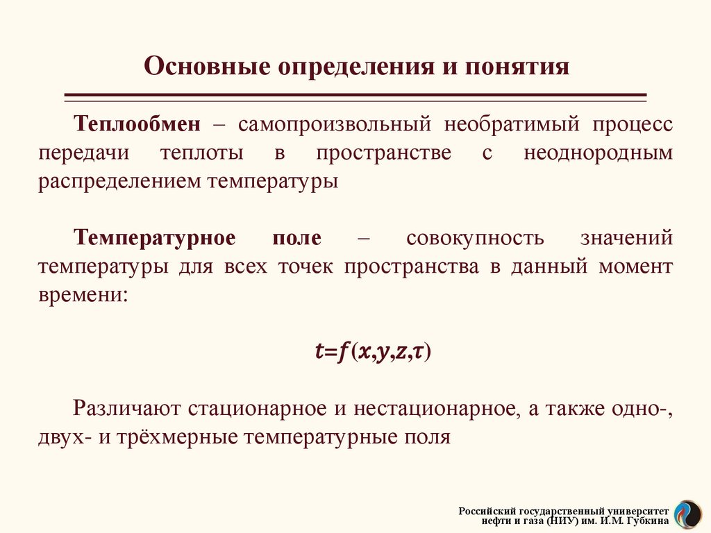 Основные определения и понятияТеплообмен – самопроизвольный необратимый процесс