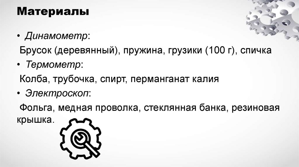 Брусок (деревянный), пружина, грузики (100 г), спичка
