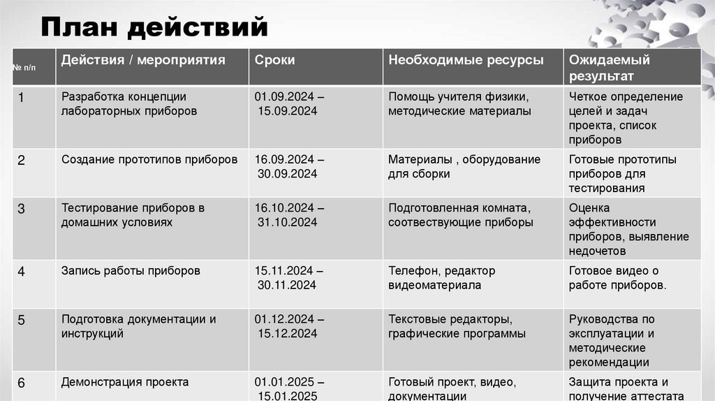 Ожидаемый результат (Продукт)• Изготовить приборы: