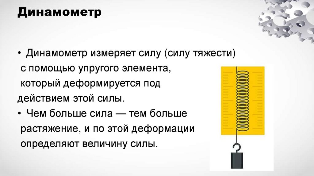 Динамометр• Динамометр измеряет силу (силу тяжести)