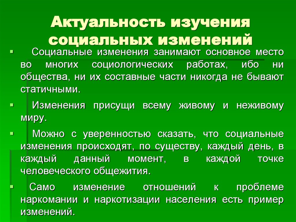 Социальные изменения занимают основное местово многих социологических работах, ибо ни