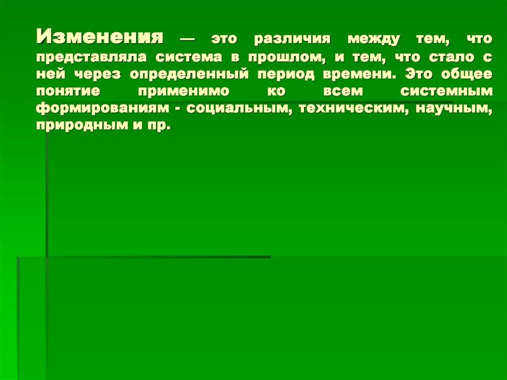 6. Изменения — это различия между тем, что представляла система в прошлом, и тем, что стало с ней через определенный период
