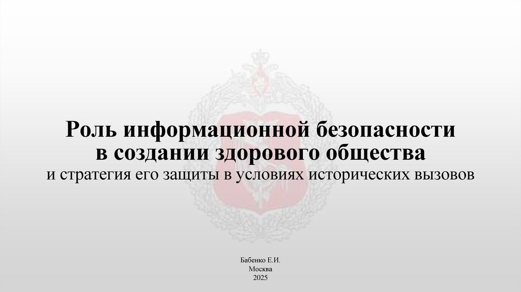 Роль информационной безопасности в создании здорового общества и стратегия его защиты в условиях исторических вызовов