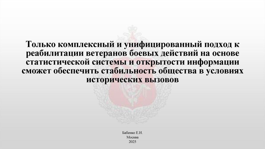 Только комплексный и унифицированный подход креабилитации ветеранов боевых действий на основе