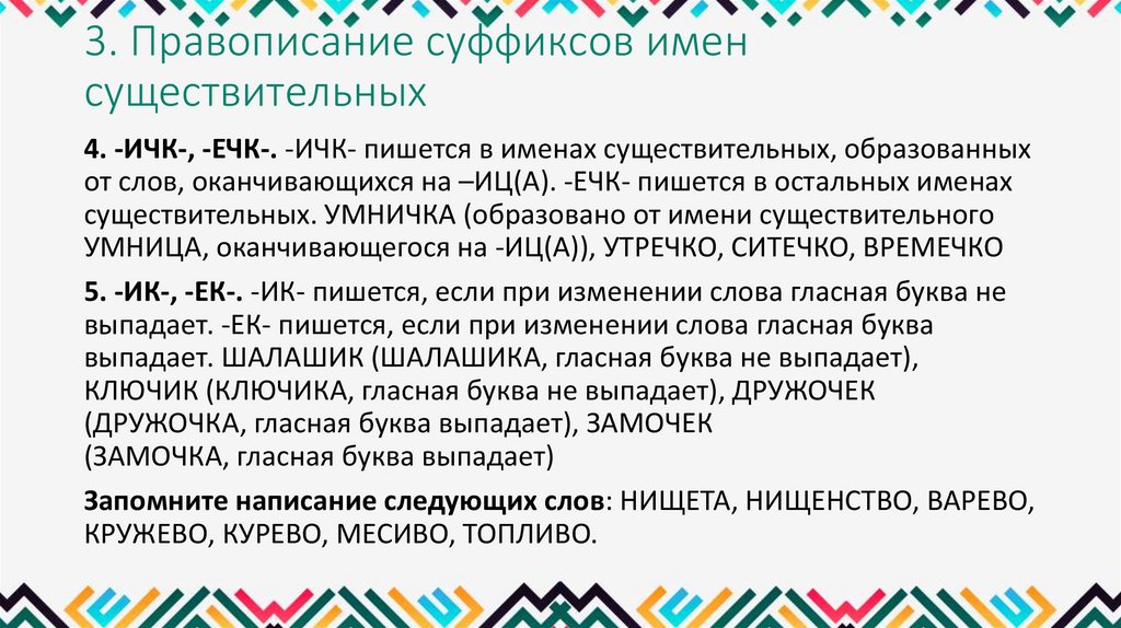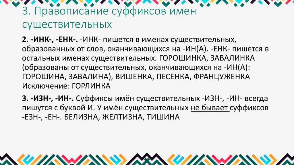 3. -ИЗН-, -ИН-. Суффиксы имён существительных -ИЗН-, -ИН- всегда