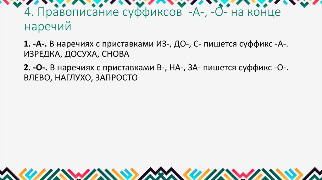 наречий пишутся буквы О, Ё; чем определяется правописание суффиксов
