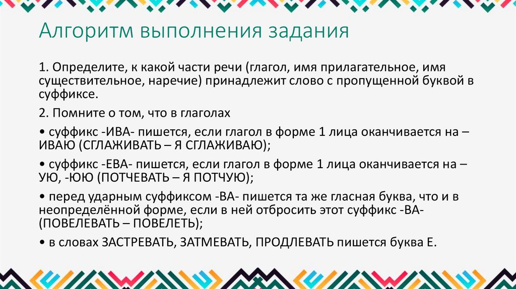1. -ИВА-, (-ЫВА-). У глаголов в начальной форме и в формепрошедшего времени пишется суффикс -ИВА-, (-ЫВА-), если в