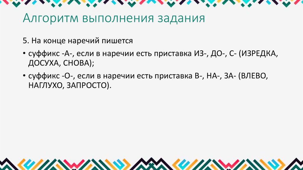 5. На конце наречий пишется• суффикс -А-, если в наречии есть приставка ИЗ-, ДО-, С- (ИЗРЕДКА,