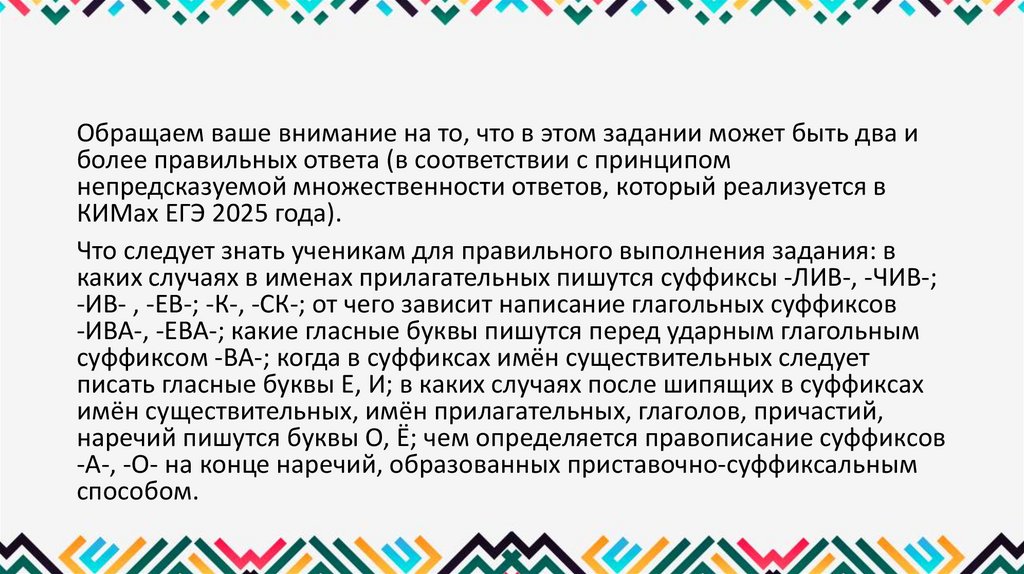 Задание 11. Правописание суффиксов имён прилагательных, имён существительных, глаголов и наречий