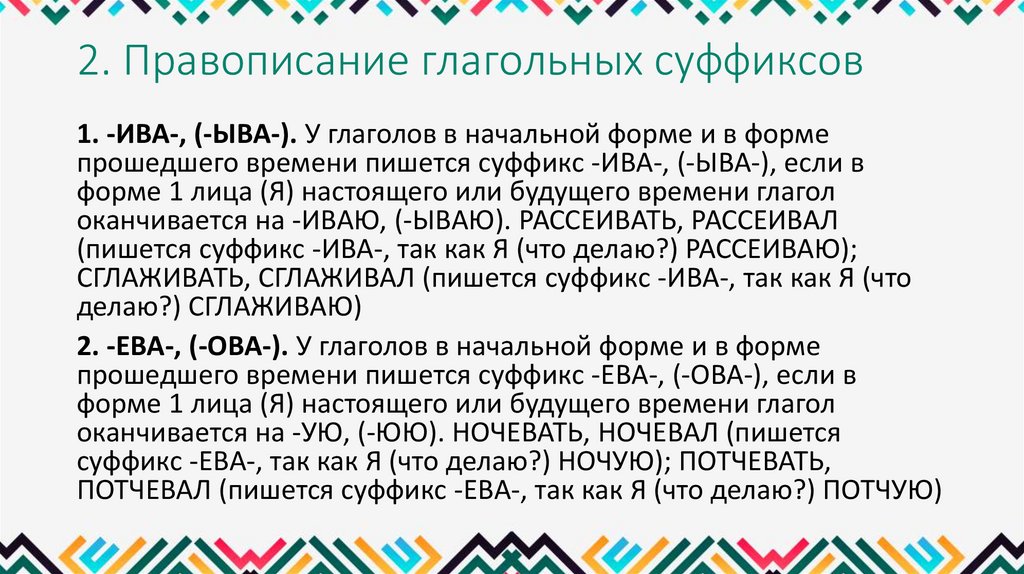 2. -ЕВА-, (-ОВА-). У глаголов в начальной форме и в форме