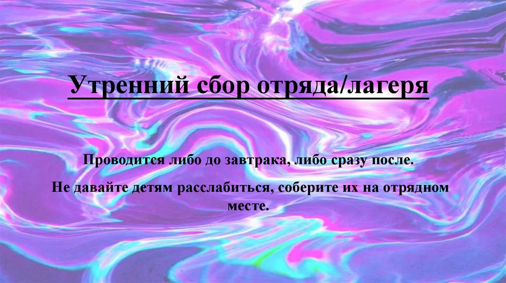 Утренний сбор отряда/лагеряПроводится либо до завтрака, либо сразу после.
