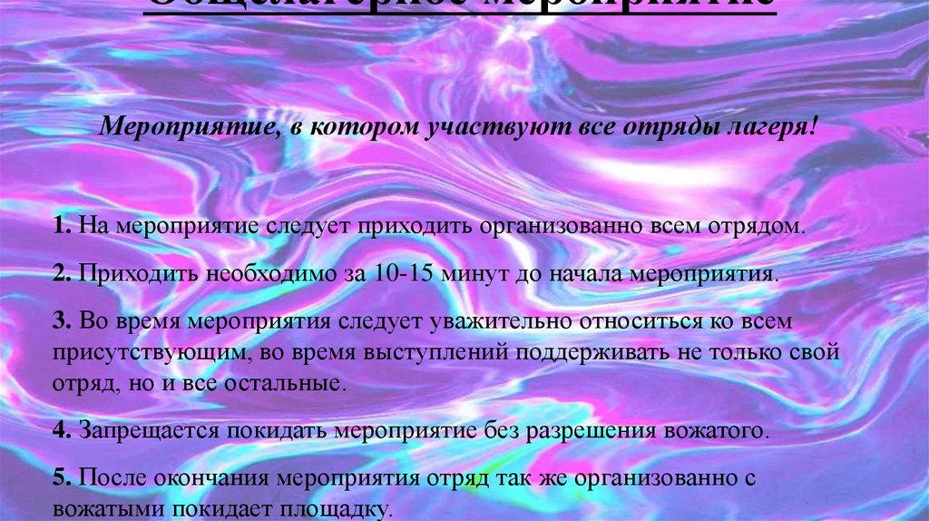 Общелагерное мероприятиеМероприятие, в котором участвуют все отряды лагеря!