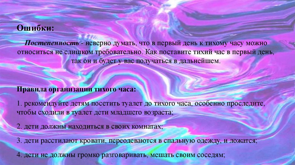Ошибки:Постепенность - неверно думать, что в первый день к тихому часу можно