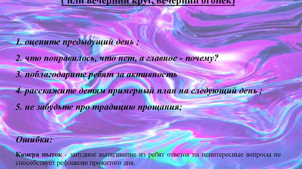 ( или вечерний круг, вечерний огонёк)1. оцените предыдущий день ;
