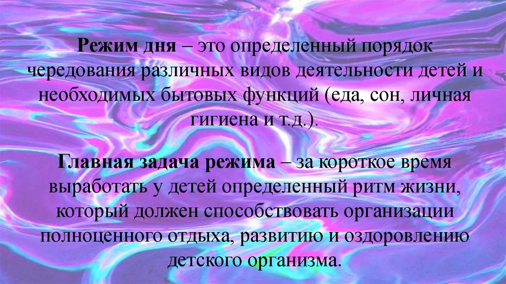 Режим дня – это определенный порядокчередования различных видов деятельности детей и