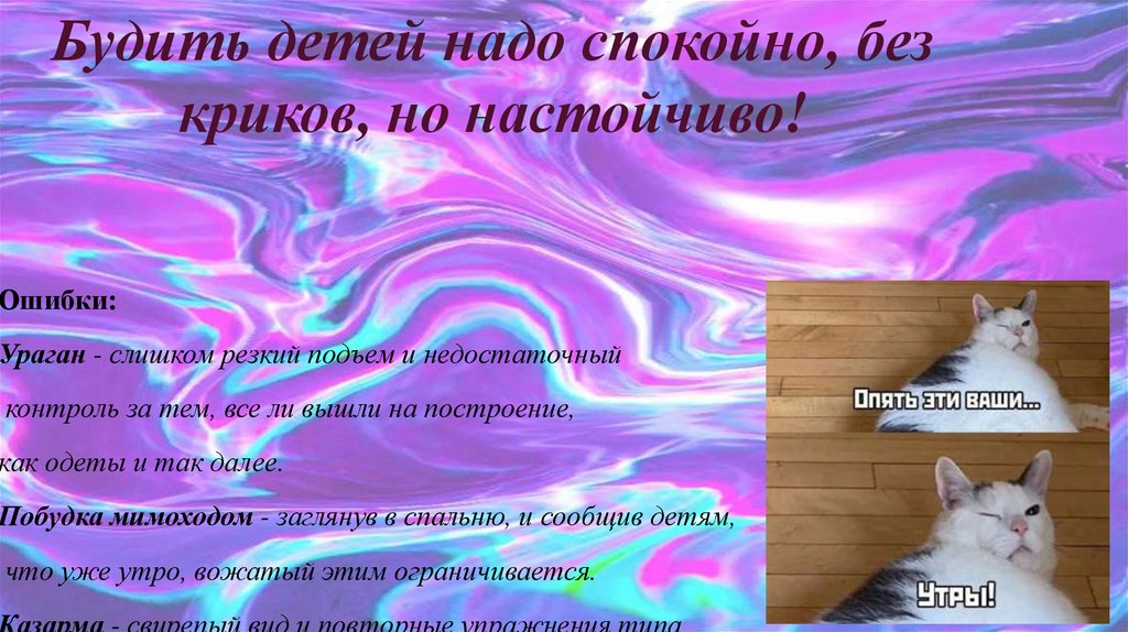 Будить детей надо спокойно, безкриков, но настойчиво!
