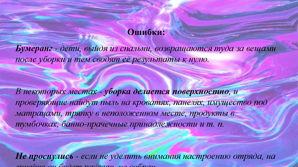 Ошибки:Бумеранг - дети, выйдя из спальни, возвращаются туда за вещами