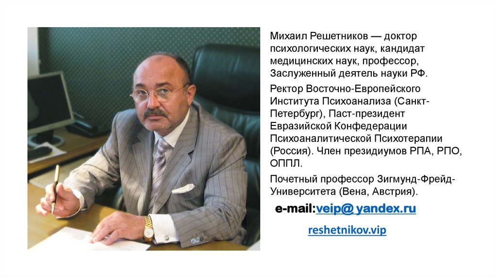Почетный профессор Зигмунд-ФрейдУниверситета (Вена, Австрия).