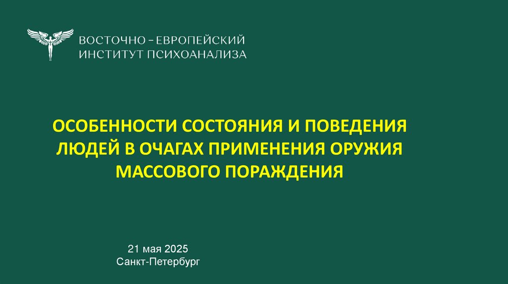ОСОБЕННОСТИ СОСТОЯНИЯ И ПОВЕДЕНИЯЛЮДЕЙ В ОЧАГАХ ПРИМЕНЕНИЯ ОРУЖИЯ