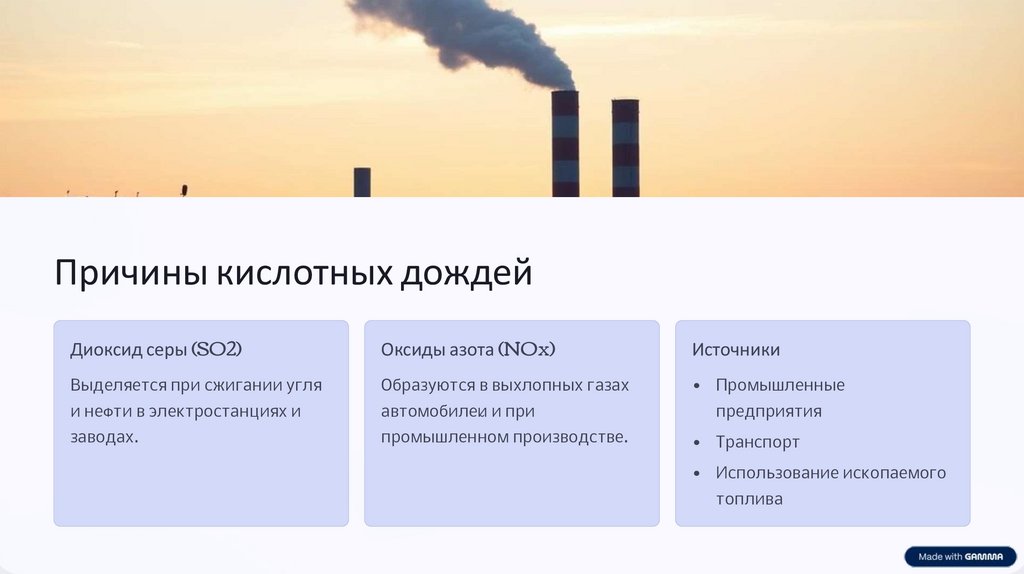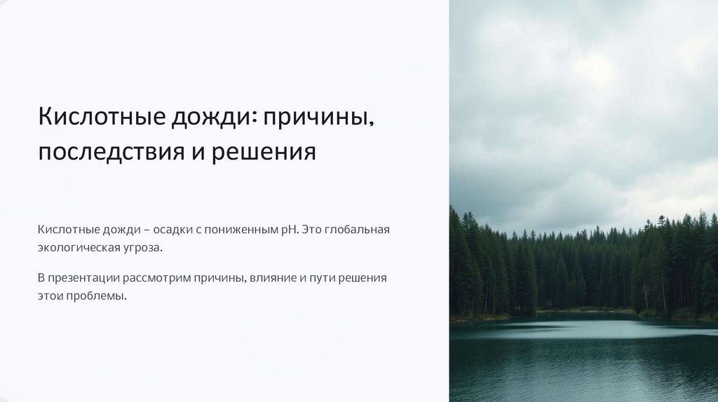 Кислотные дожди — осадки с пониженным pH. Это глобальная