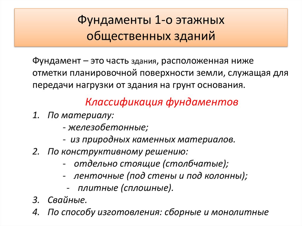 Фундаменты 1-о этажных общественных зданий (Лекция №3)