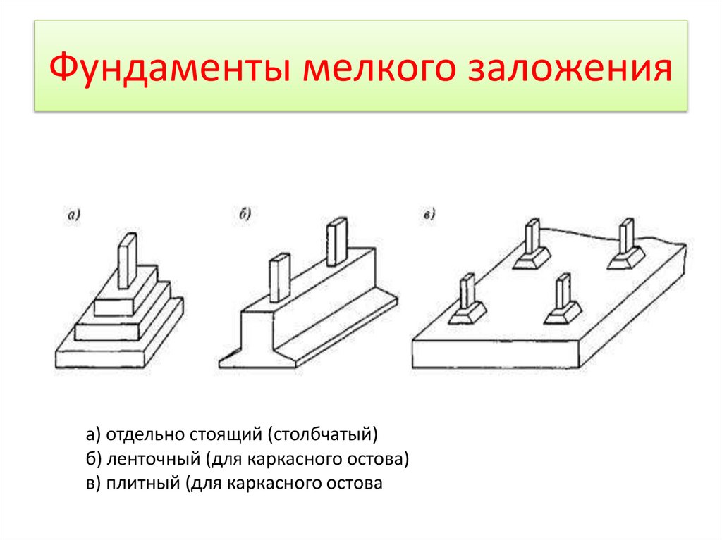 а) отдельно стоящий (столбчатый)б) ленточный (для каркасного остова)