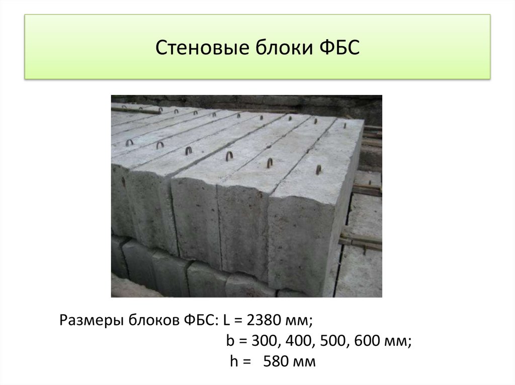 Размеры блоков ФБС: L = 2380 мм;b = 300, 400, 500, 600 мм;