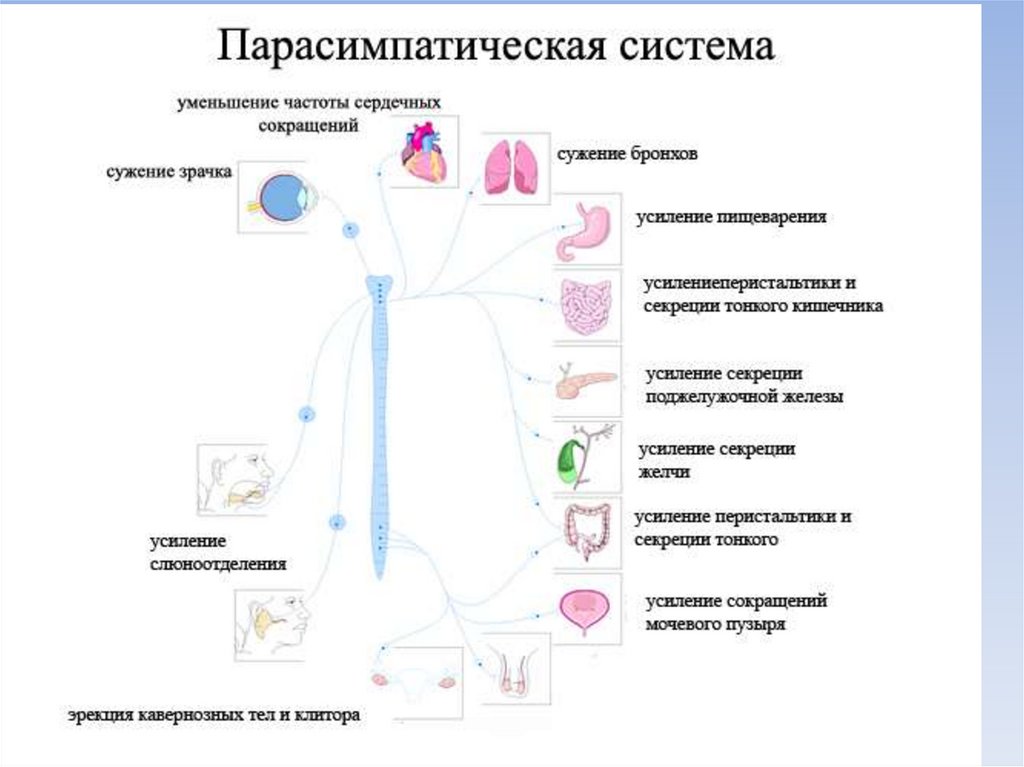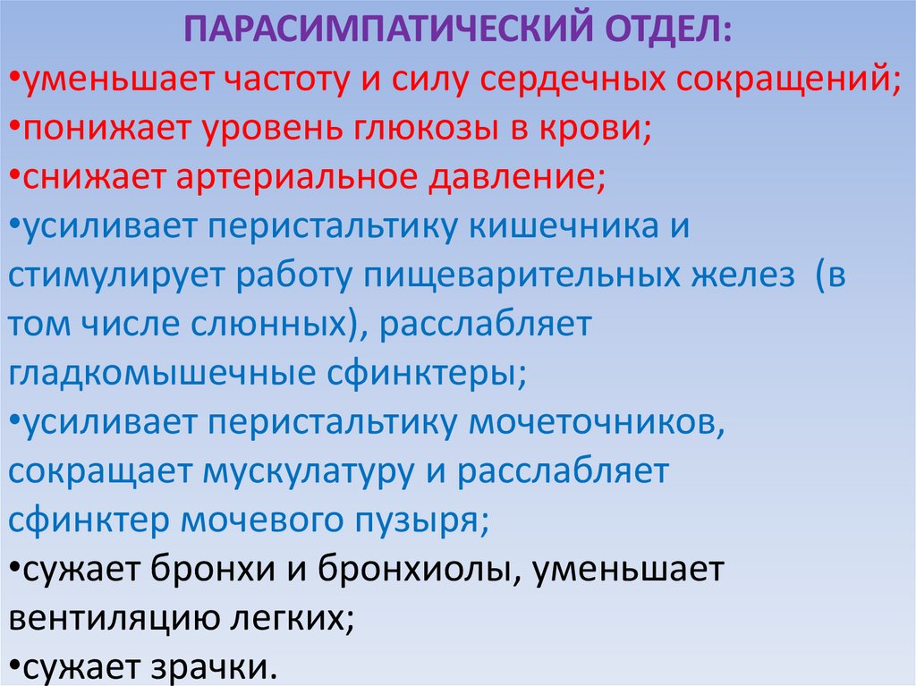 ПАРАСИМПАТИЧЕСКИЙ ОТДЕЛ:•уменьшает частоту и силу сердечных сокращений;
