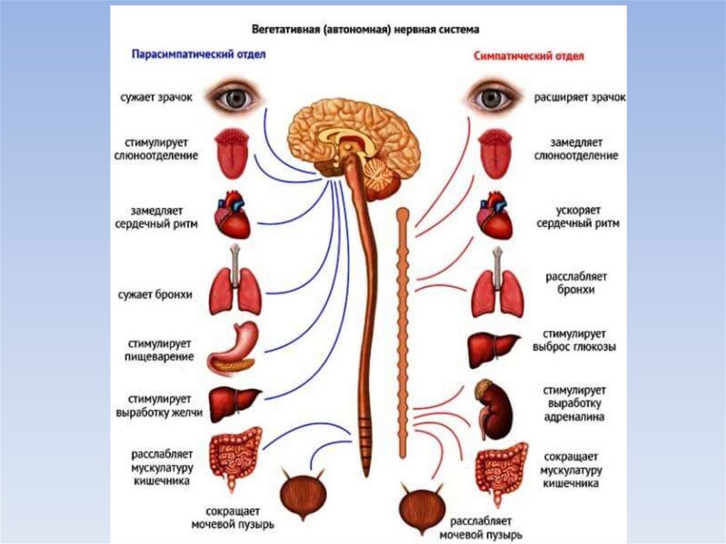 3. Функции ВНС - управляет тем , чем не управляет соматическая НС (рост, размножение,обмен веществ, гл.мускулатура,железы… )