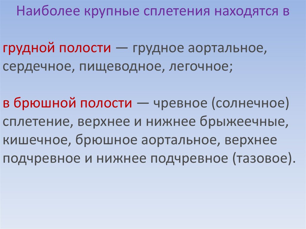 Наиболее крупные сплетения находятся вгрудной полости — грудное аортальное,