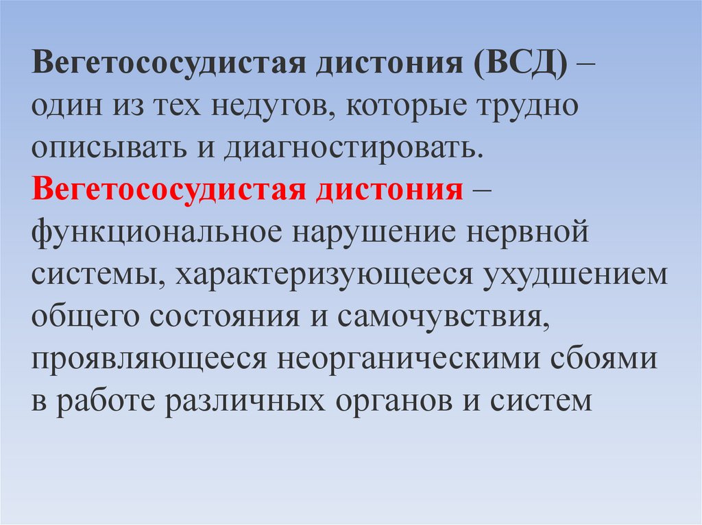 Вегетососудистая дистония (ВСД) –один из тех недугов, которые трудно