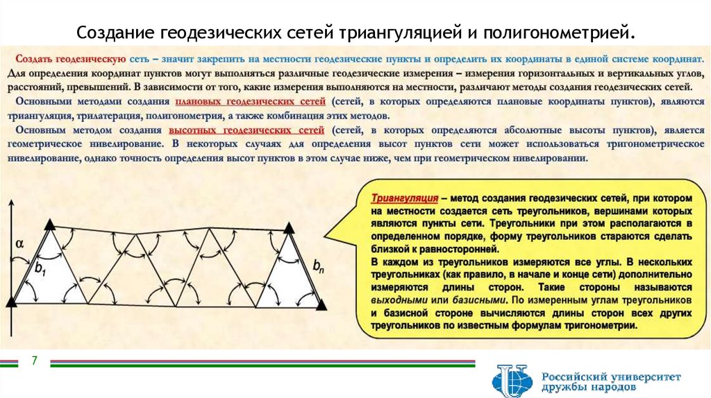 построение сетей триангуляции. Геодезические сети