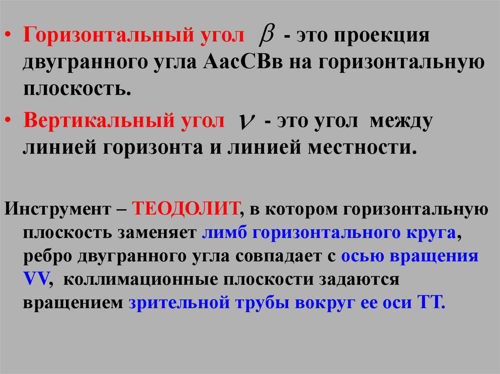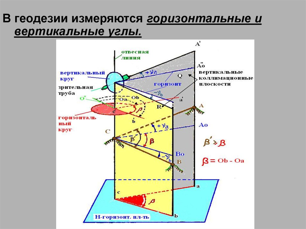 В геодезии измеряются горизонтальные ивертикальные углы.
