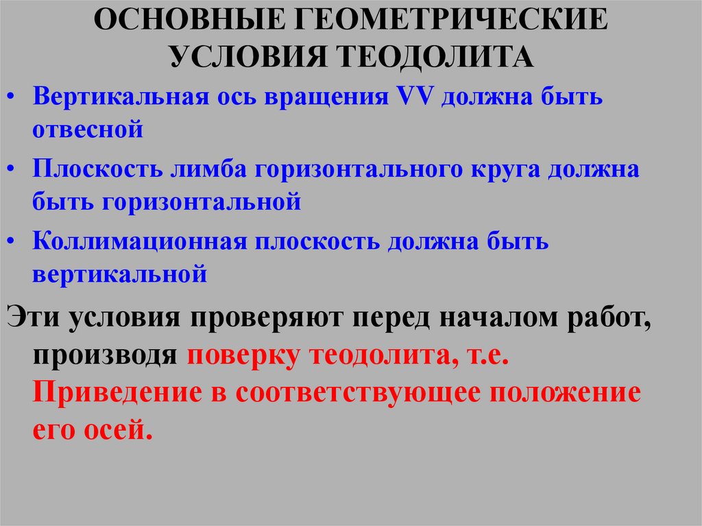 12. ОСНОВНЫЕ ГЕОМЕТРИЧЕСКИЕ УСЛОВИЯ ТЕОДОЛИТА