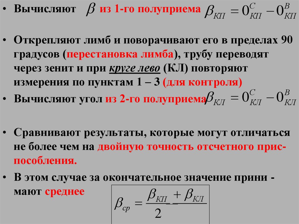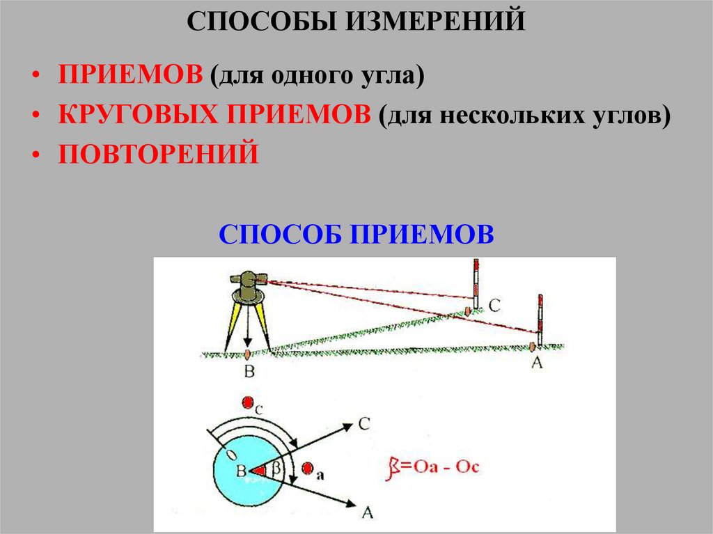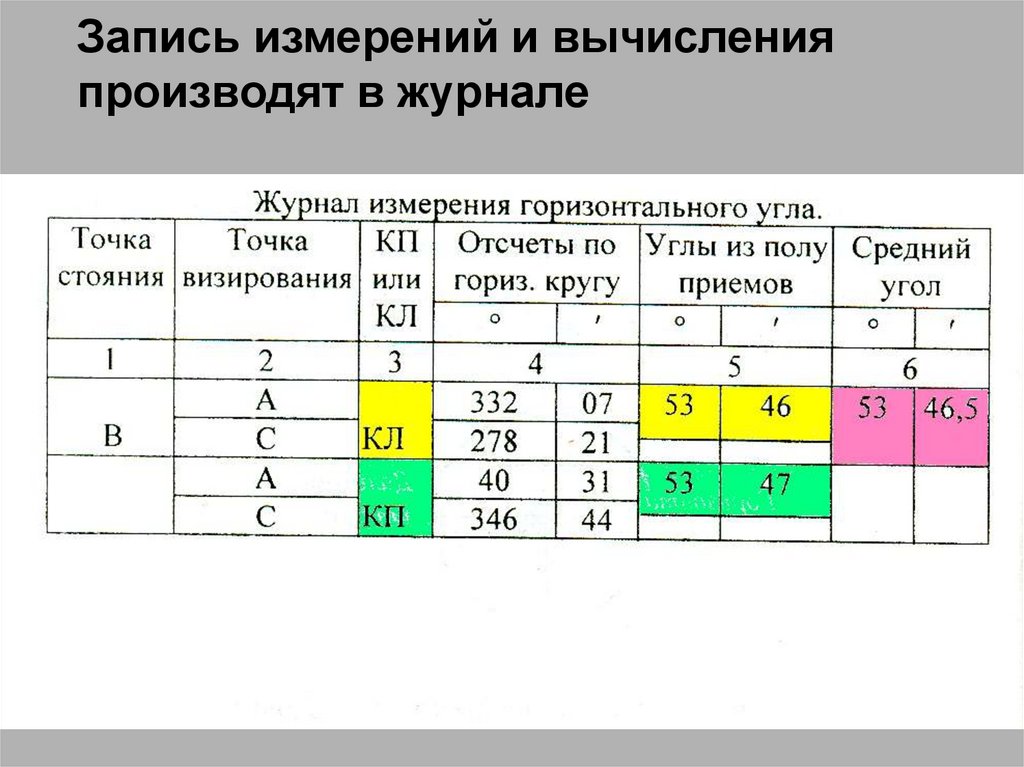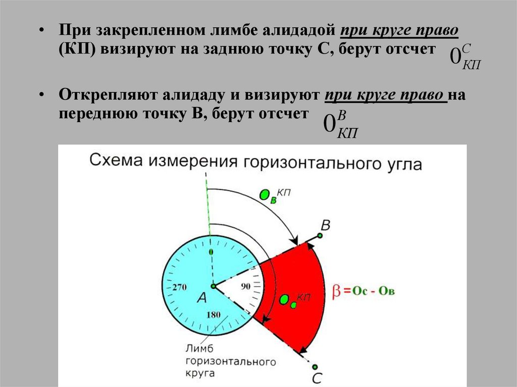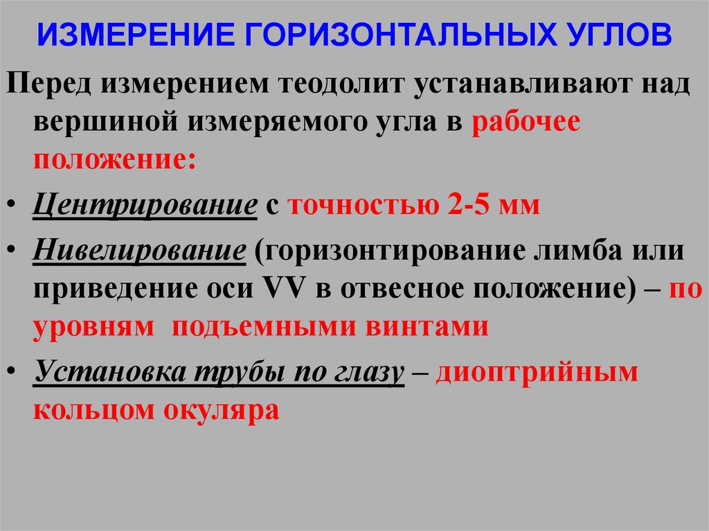 Перед измерением теодолит устанавливают надвершиной измеряемого угла в рабочее