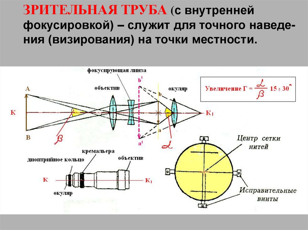 ЗРИТЕЛЬНАЯ ТРУБА (с внутреннейфокусировкой) – служит для точного наведения (визирования) на точки местности.
