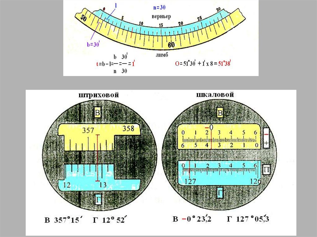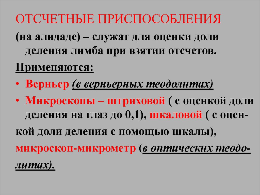 ОТСЧЕТНЫЕ ПРИСПОСОБЛЕНИЯ(на алидаде) – служат для оценки доли