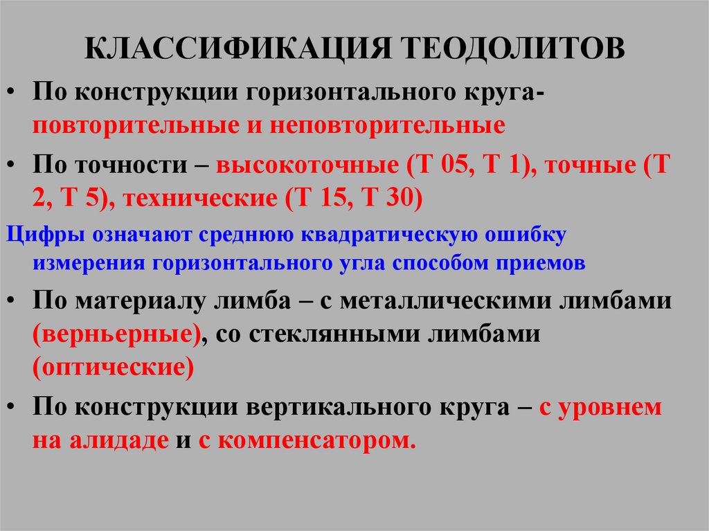10. КЛАССИФИКАЦИЯ ТЕОДОЛИТОВ