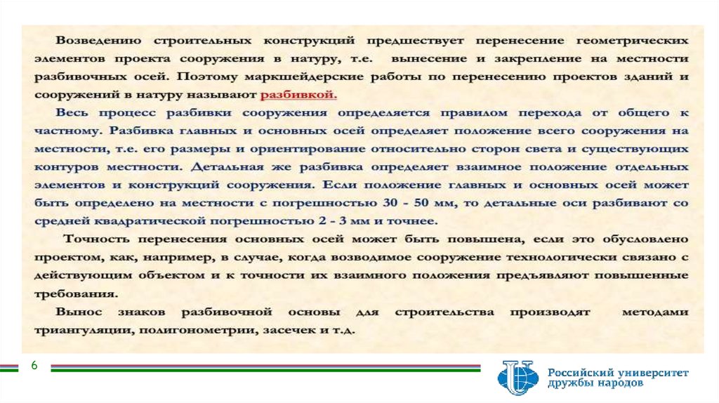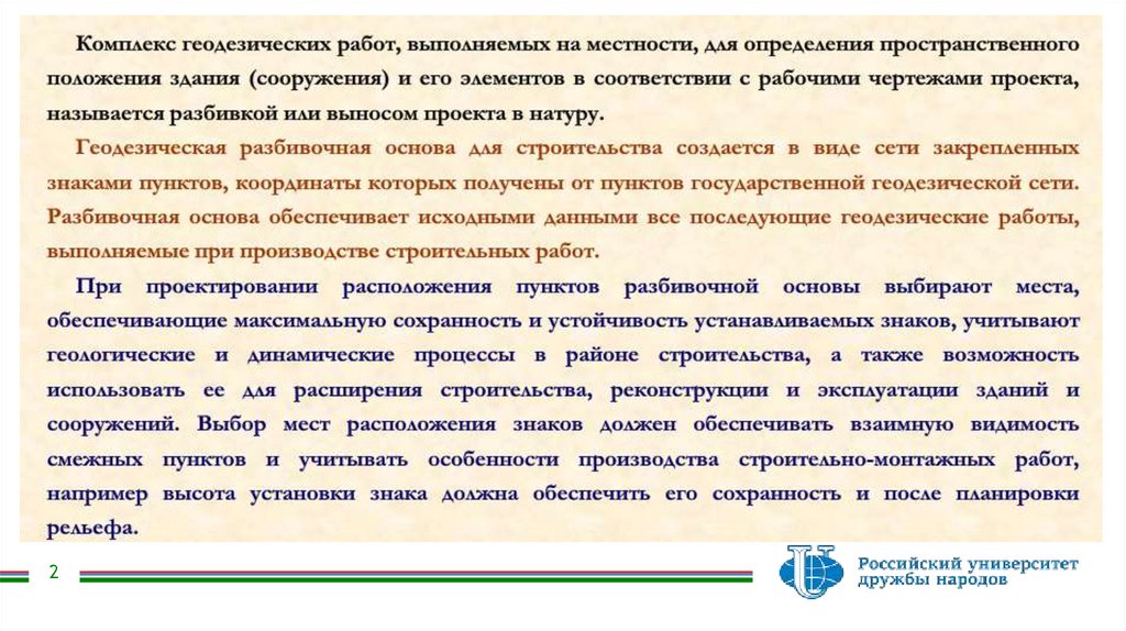 Основные элементы планово-высотных разбивочных работ. Лекция 2