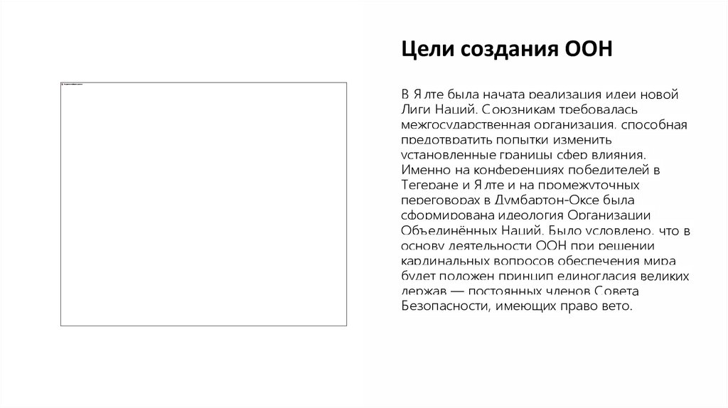 Цели создания ООНВ Я лте была начата реализация идеи новой