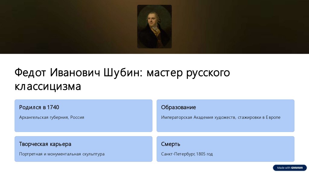 Федот Иванович Шубин: мастер русскогокл ассицизма