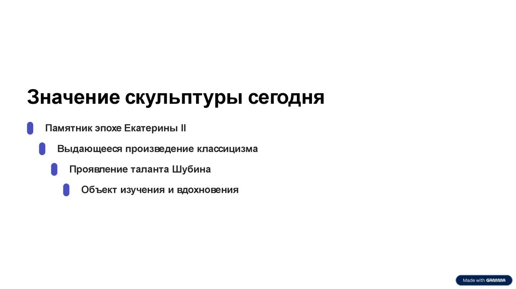 Значение скульптуры сегодняПамятник эпохе Екатерины II