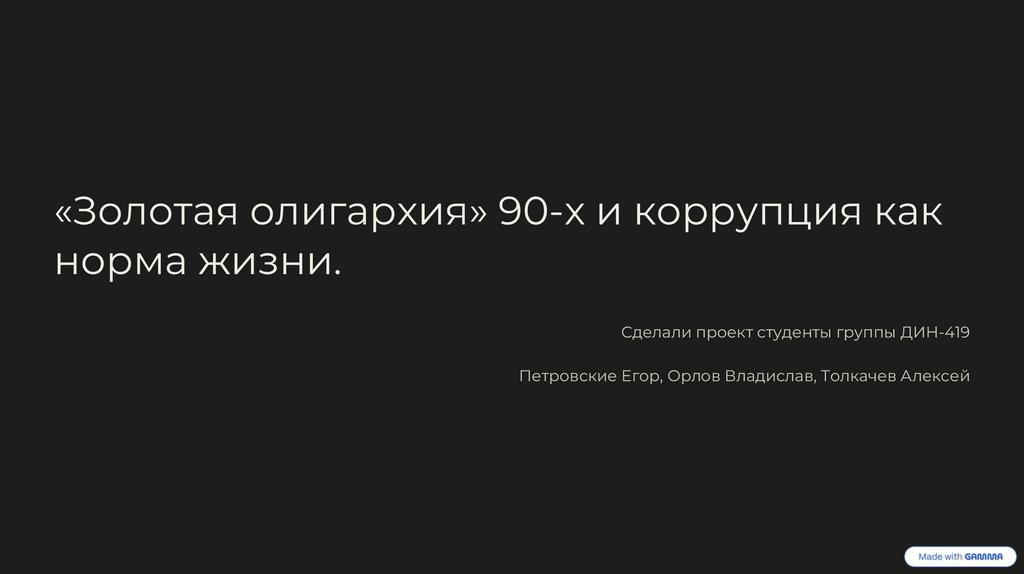 «Золотая олигархия» 90-х и коррупция какнорма жизни.